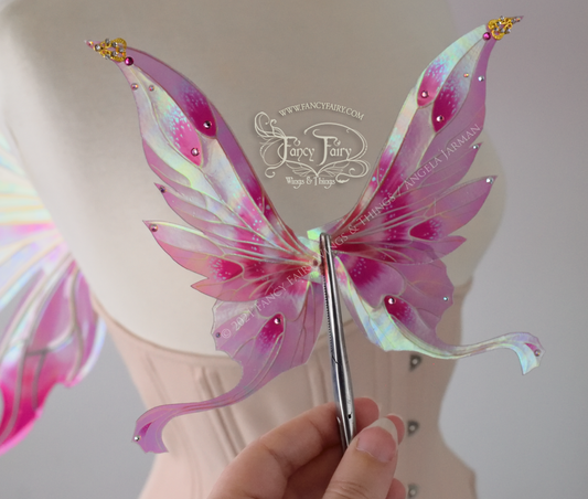 Aynia "Valentine" Painted Convertible Iridescent Fairy Wings with Gold Veins & Mini Wings