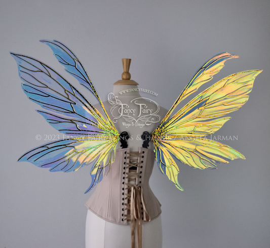 Aynia "Starry Night" Painted Convertible Iridescent Fairy Wings with Black Veins, Ready to Ship