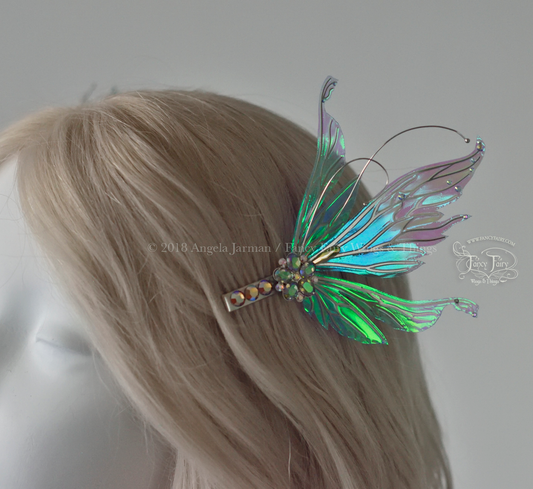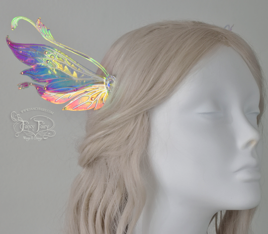 Vivienne 5 inch Fairy Wings Hair Pins in Electric Rainbow with Silver Veins