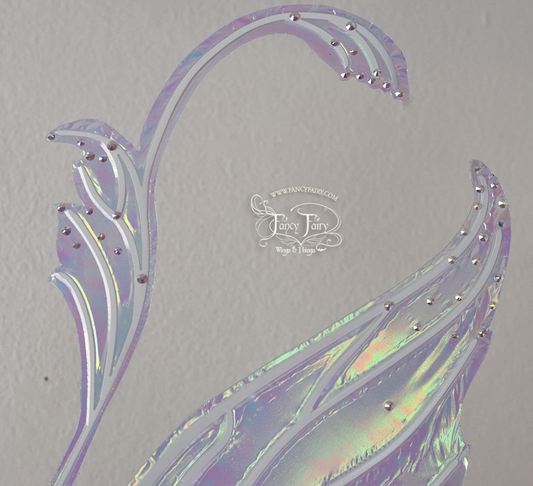 Vivienne Iridescent Fairy Wings in Light Blue with Pearl Veins and Swarovski Crystals