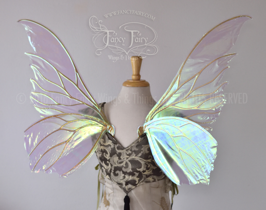 Clarion Iridescent Fairy Wings in Satin White with Gold veins