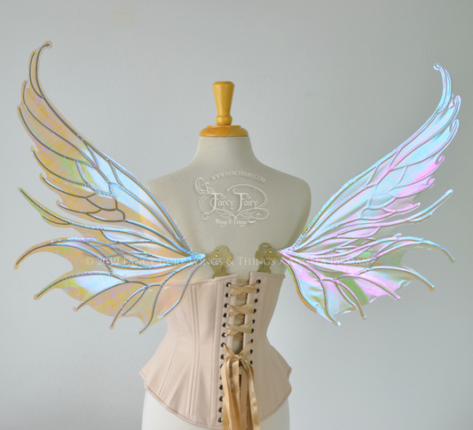 Aquatica Iridescent Convertible Fairy Wings in Opal with Candy Gold veins