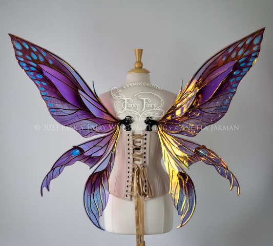 Cosette Convertible Iridescent "Pix" Painted Fairy Wings in Lavender Fire, Ready to Ship
