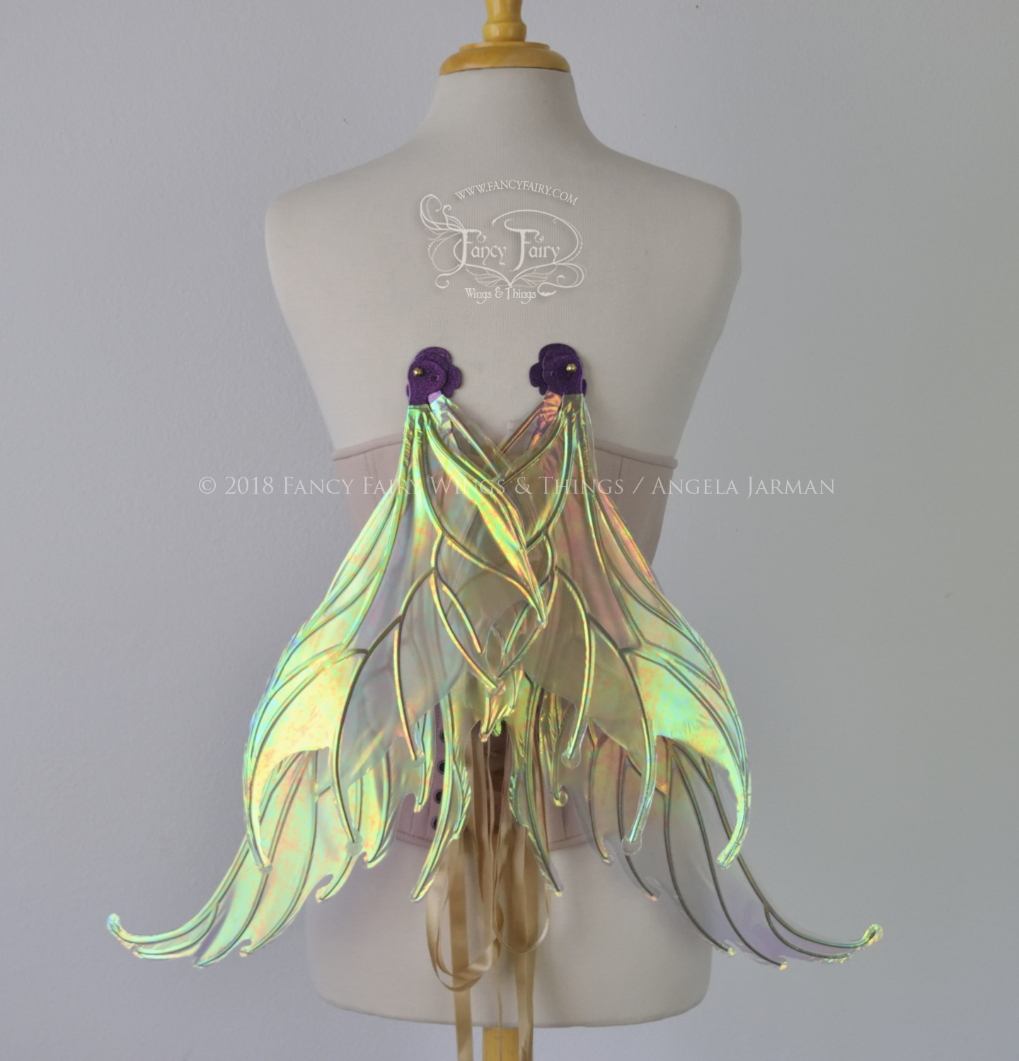 Aquatica Iridescent Convertible Fairy Wings in Patina with Chameleon Cherry Violet Glitter veins