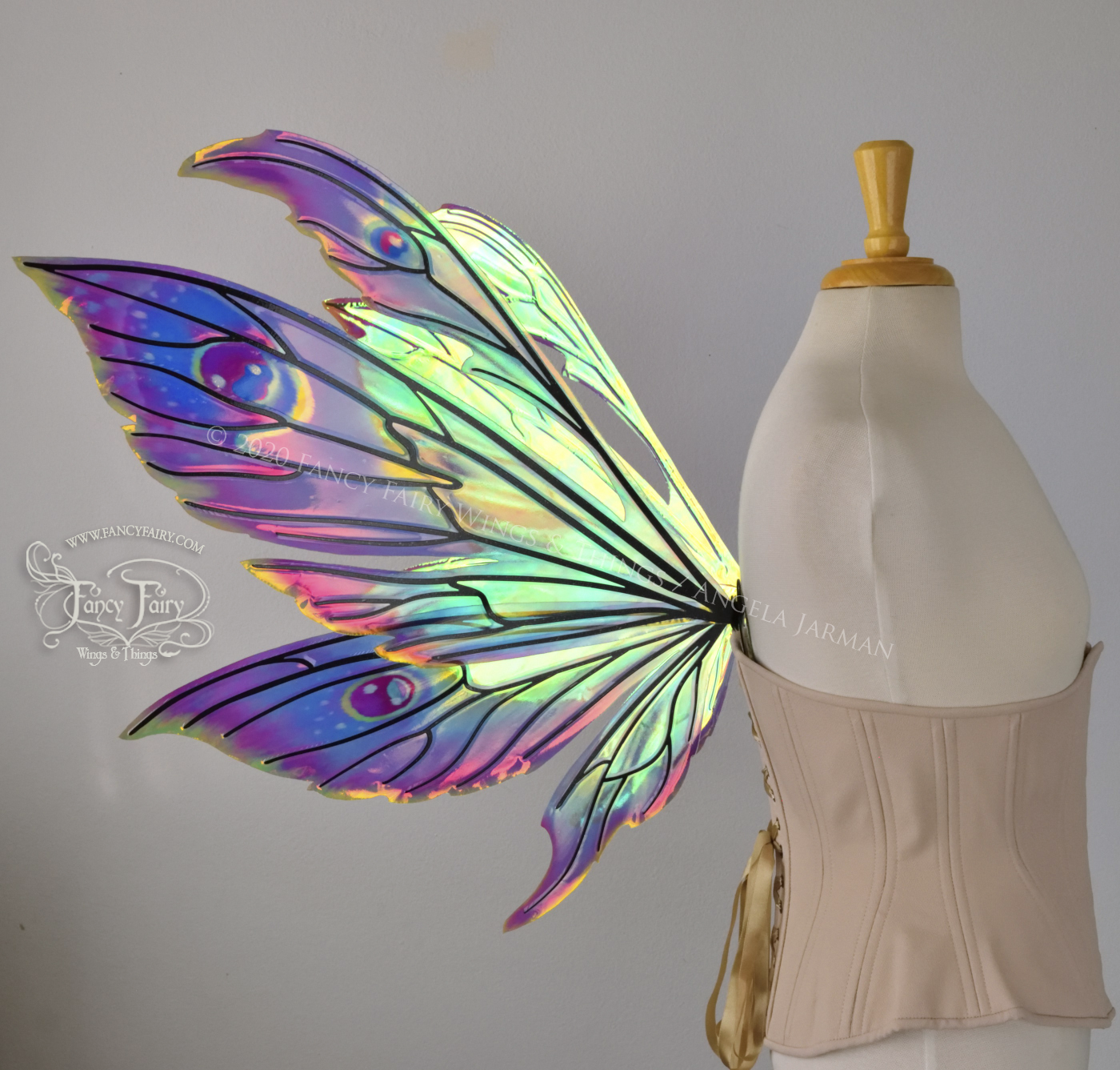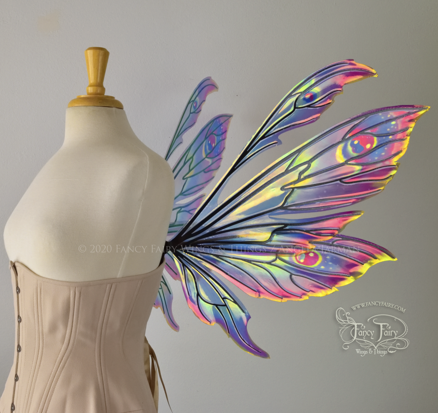 Aynia "Electric Rainbow" Painted Convertible Iridescent Fairy Wings with Black Veins