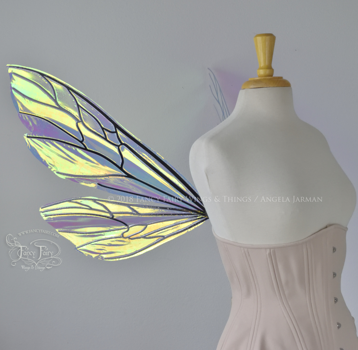 Ellette Convertible Iridescent Fairy Wings in Clear Diamond Fire with black veins