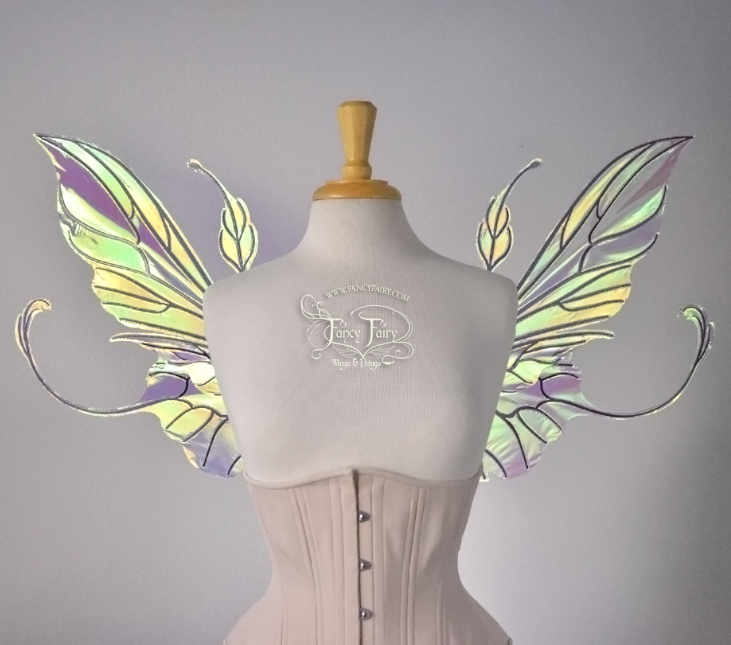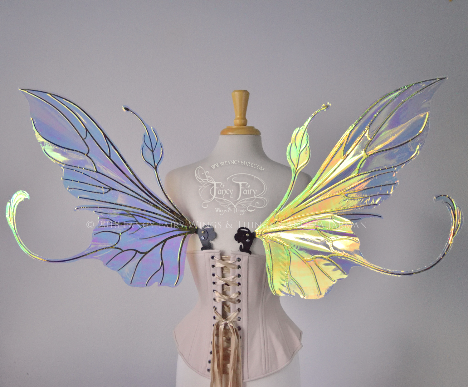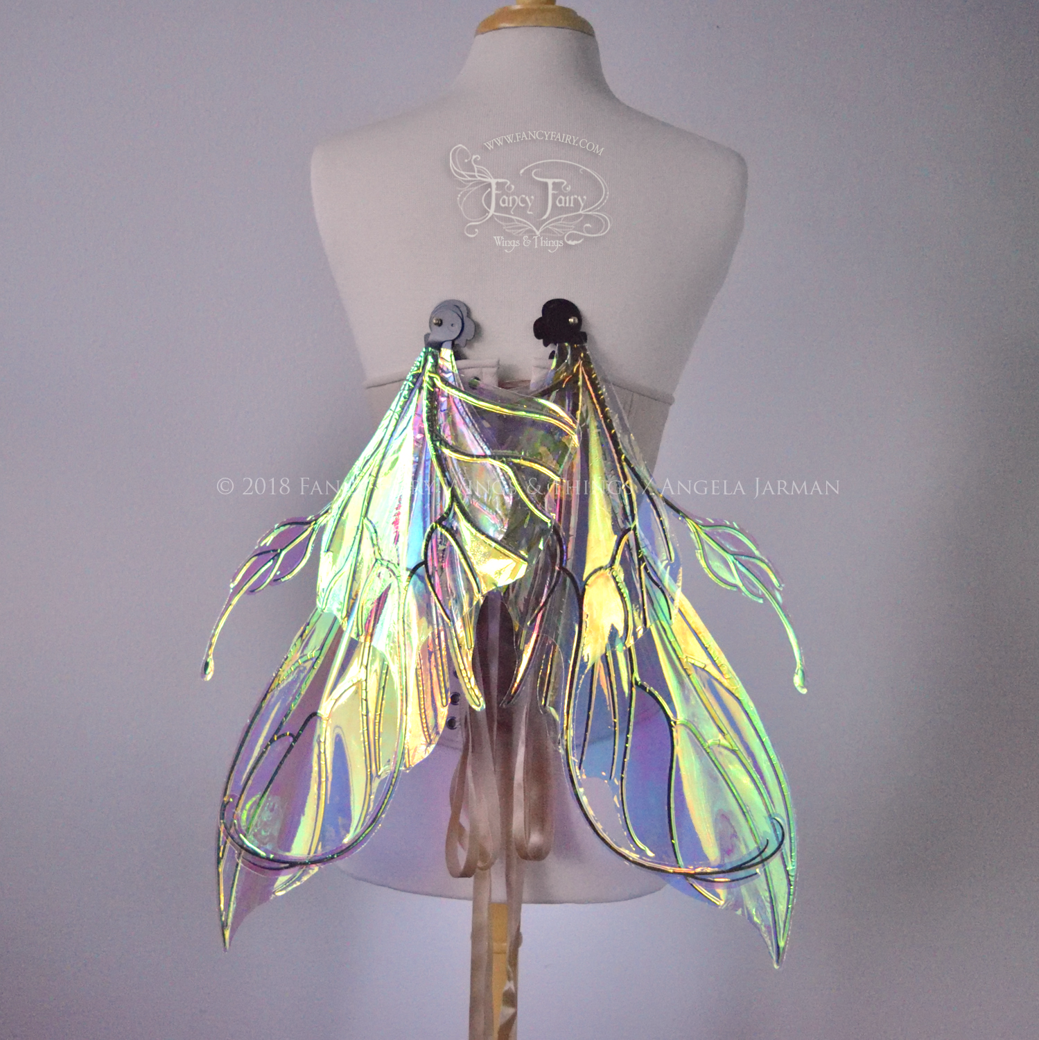 Elvina Iridescent Convertible Fairy Wings in Clear Diamond Fire with Black veins