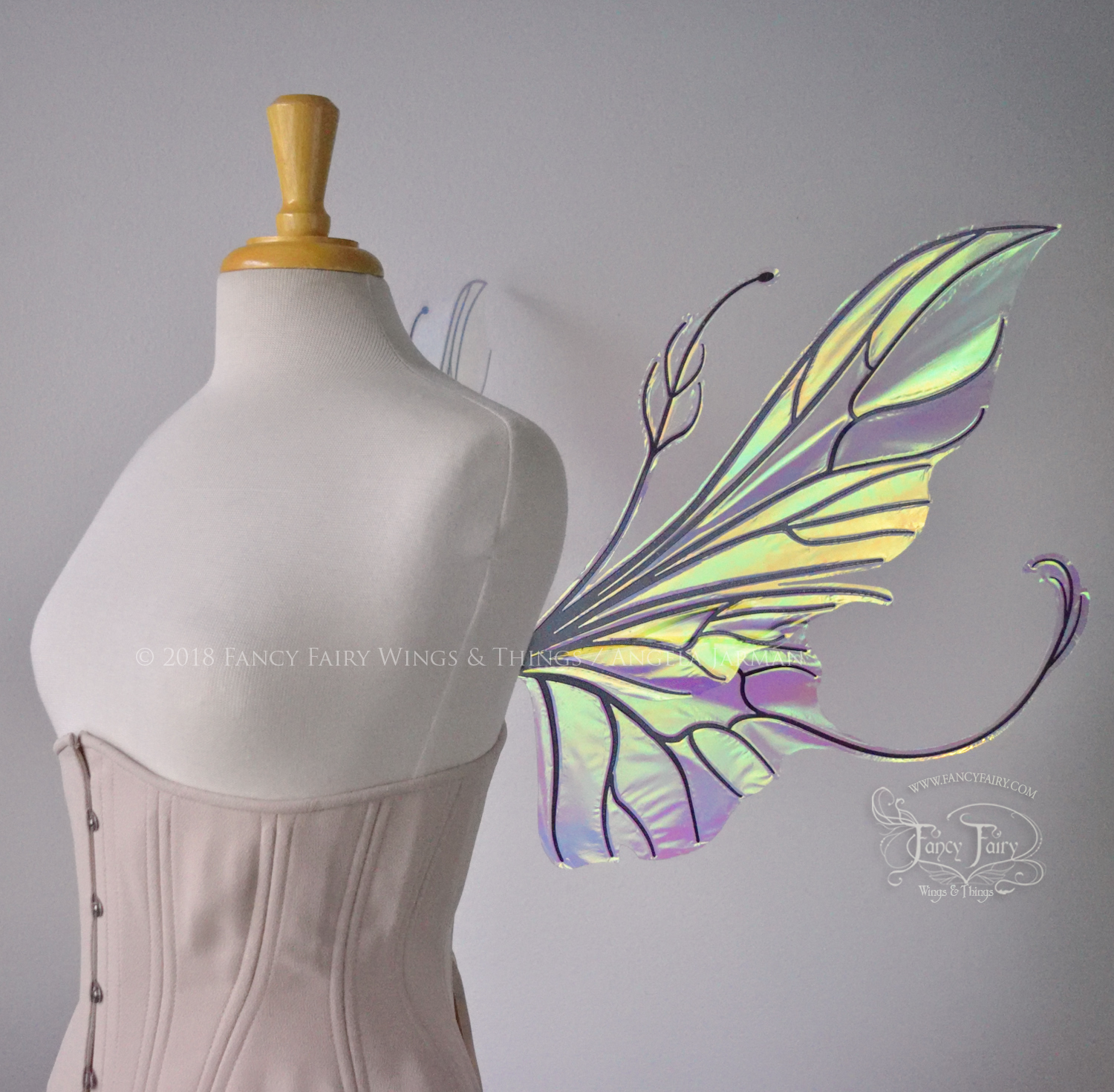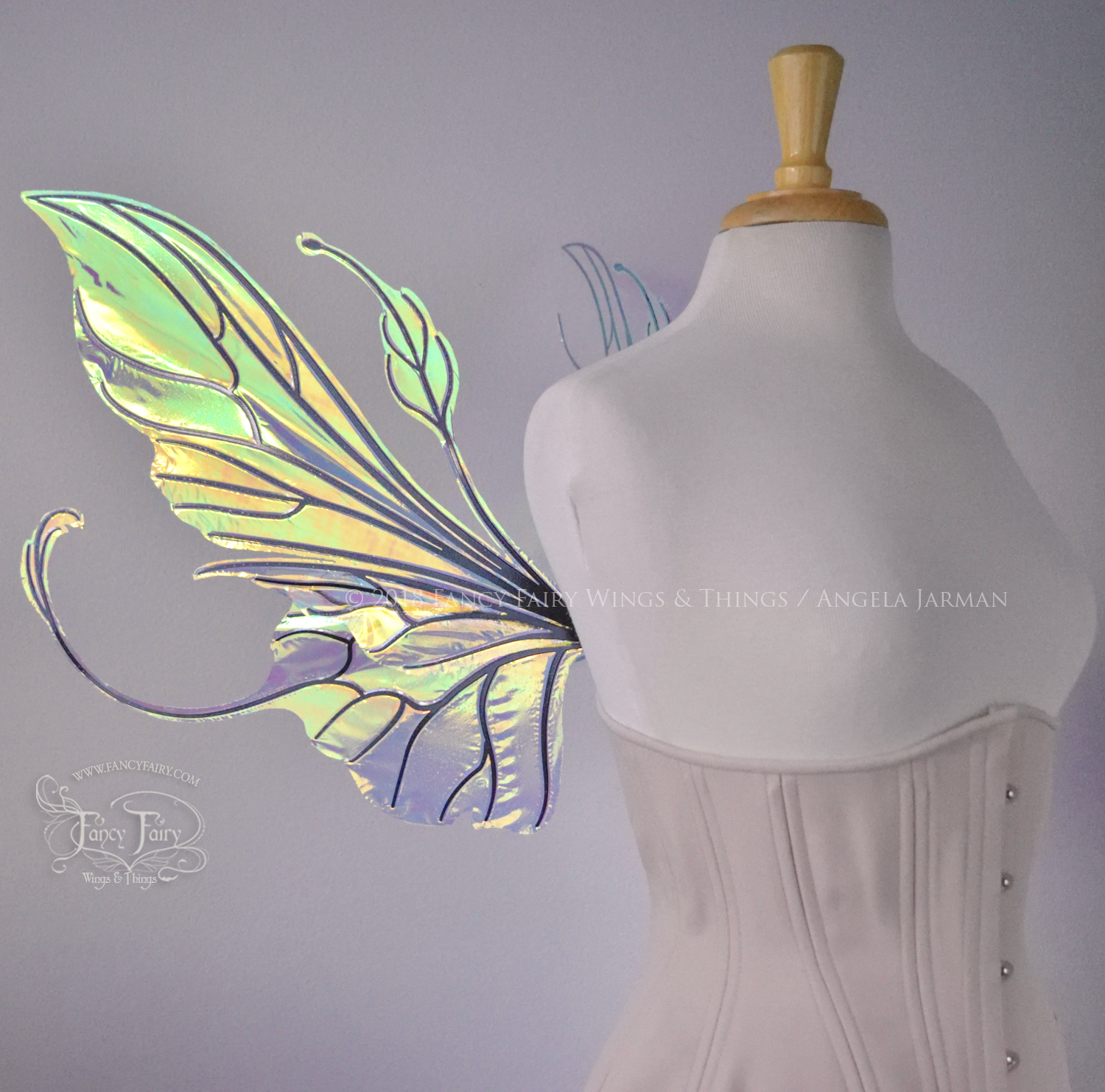The Elvina design is from the 2018 Ethereal Collection of convertible fairy wings, which can be positioned in either an 'up' or a resting 'down' position without compromising the metal with harsh bending.