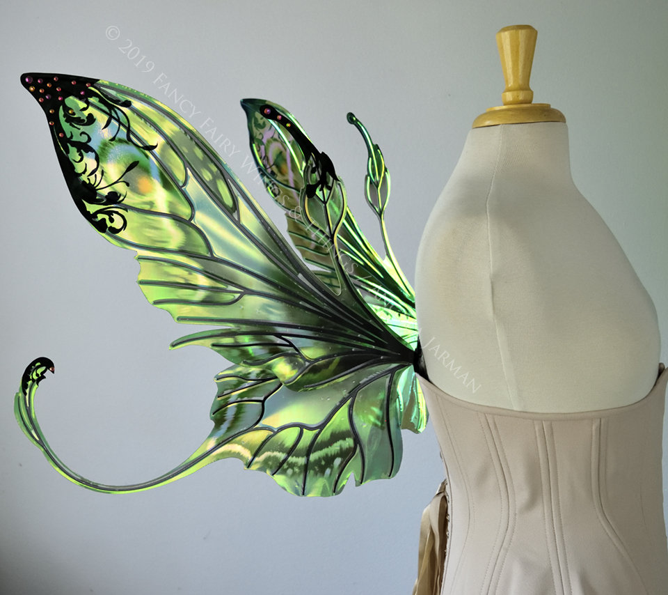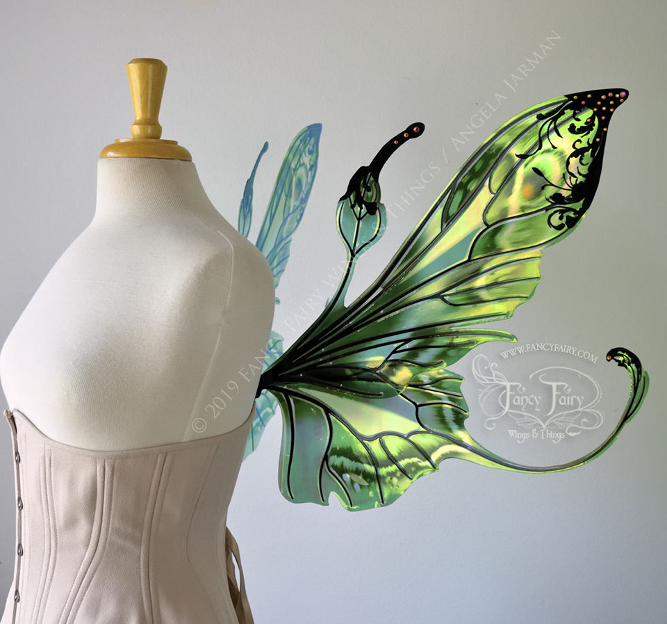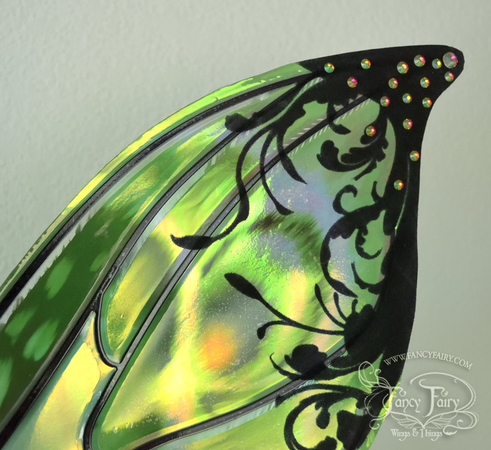 Elvina "Absinthe & Arsenic" Flocked Iridescent Convertible Fairy Wings with AB Crystals
