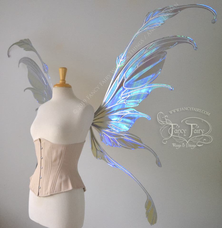 Giant Fauna Iridescent Convertible Fairy Wings in Dark Crystal with Silver Veins