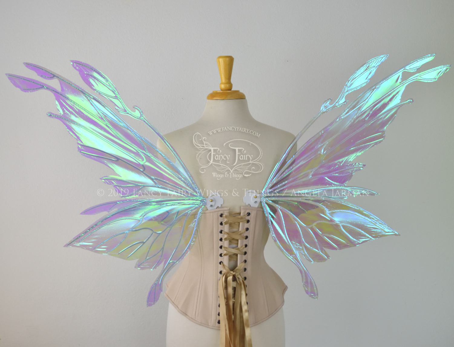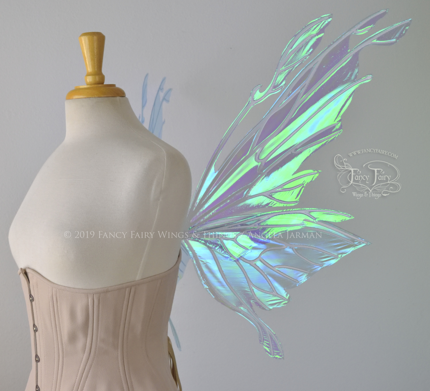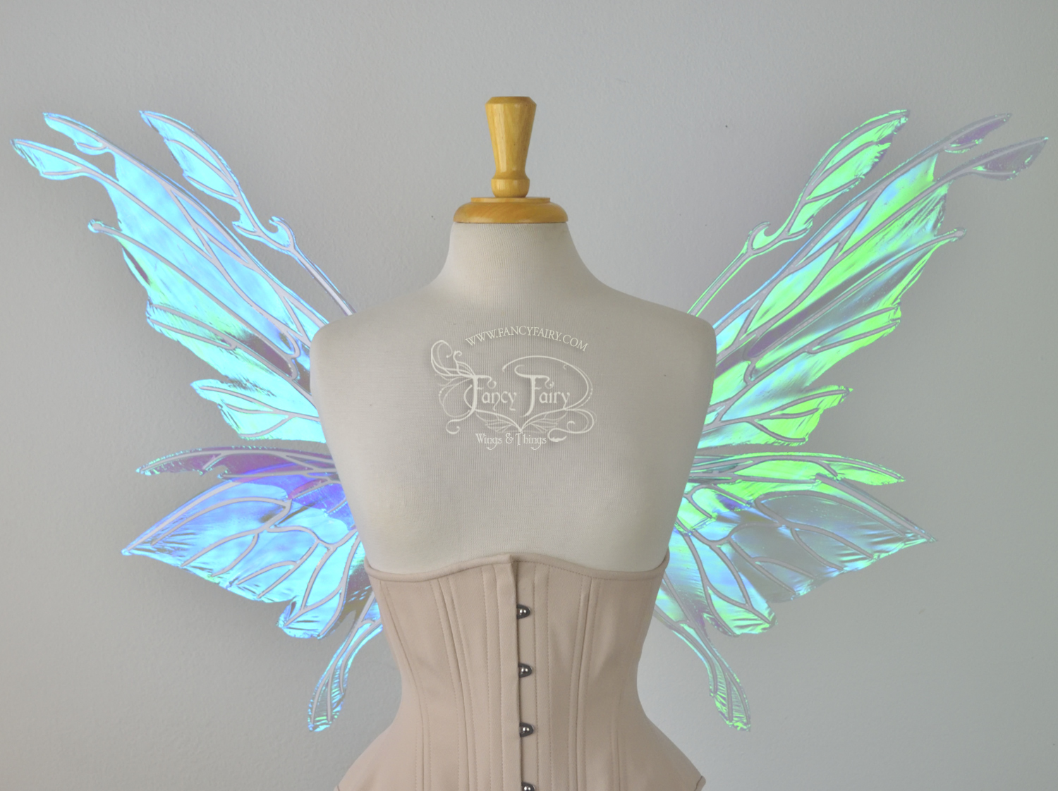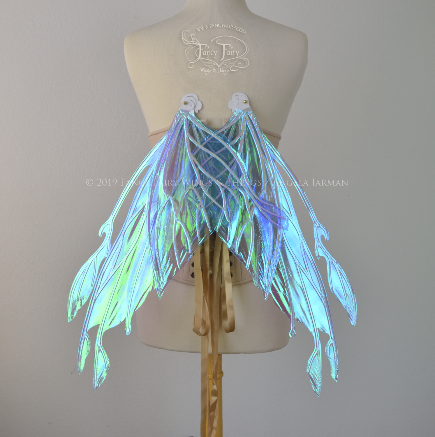 Goblin Princess New Convertible Iridescent Fairy Wings in Aquamarine with Pearl Veins