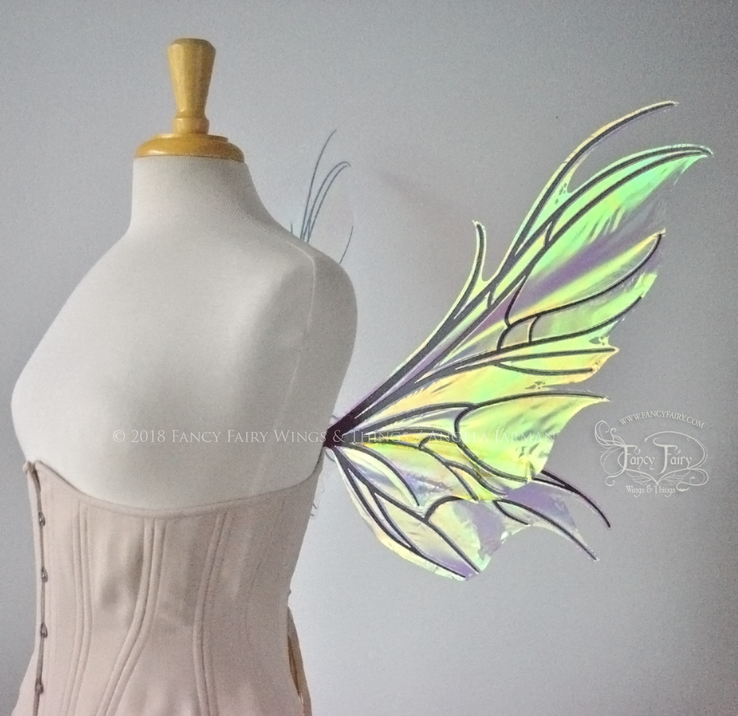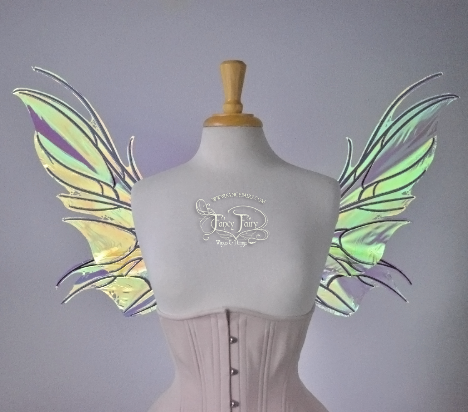 Nightshade Iridescent Convertible Fairy Wings in Clear Diamond Fire with Black veins