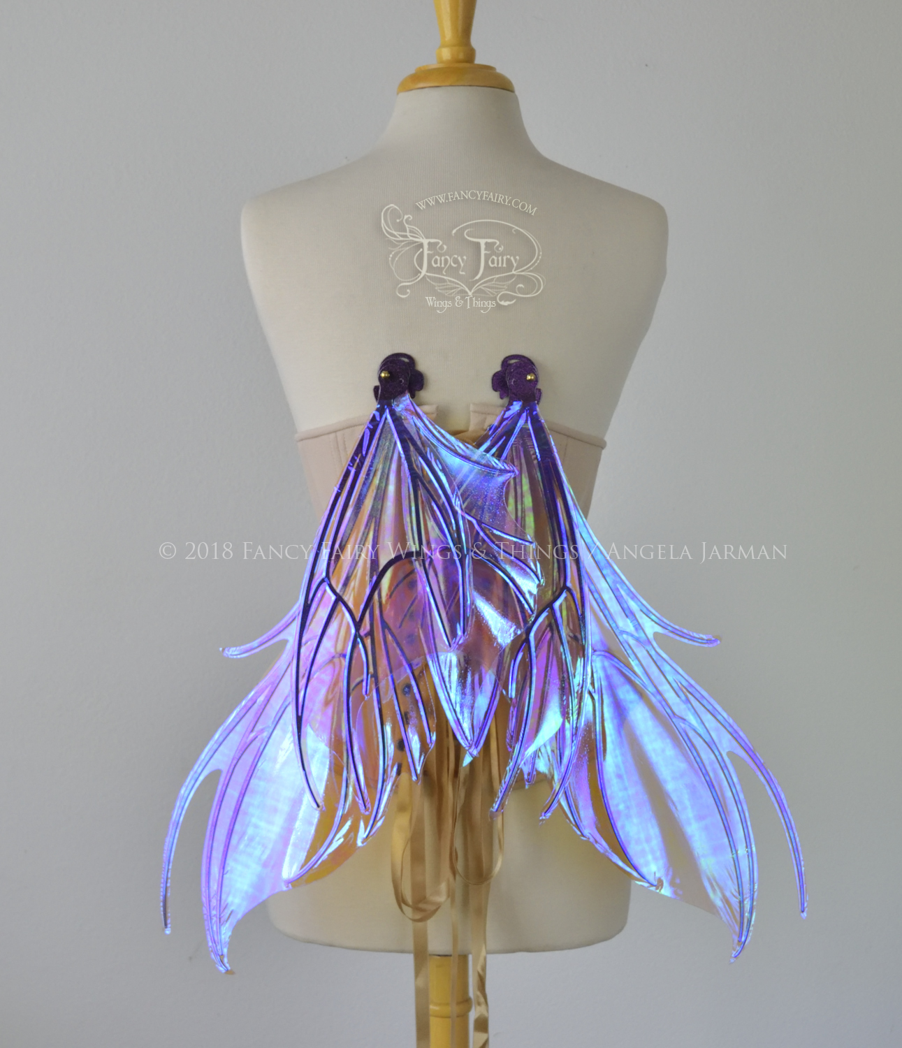 Nightshade Iridescent Convertible Fairy Wings in Lilac with Chameleon Cherry Violet Glitter veins