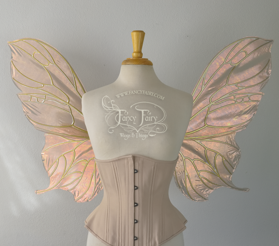 Pansy Iridescent Convertible Fairy Wings in Rose Gold with Candy Gold veins