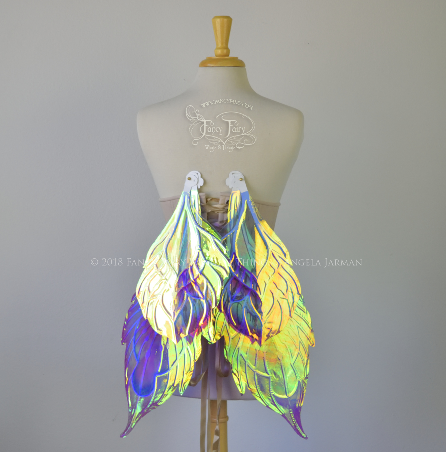 Sintra 'Peacock #2' Iridescent Convertible Fairy Wings with White veins