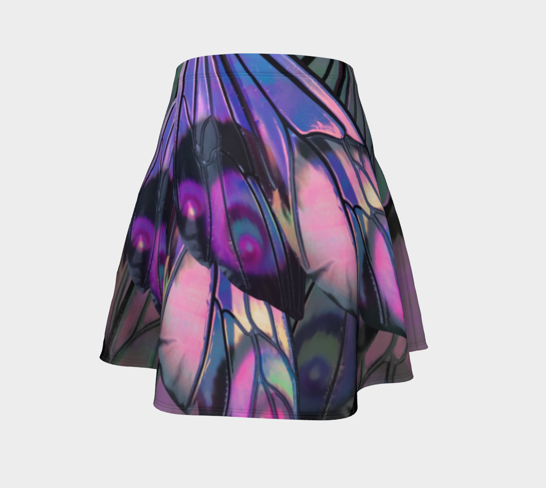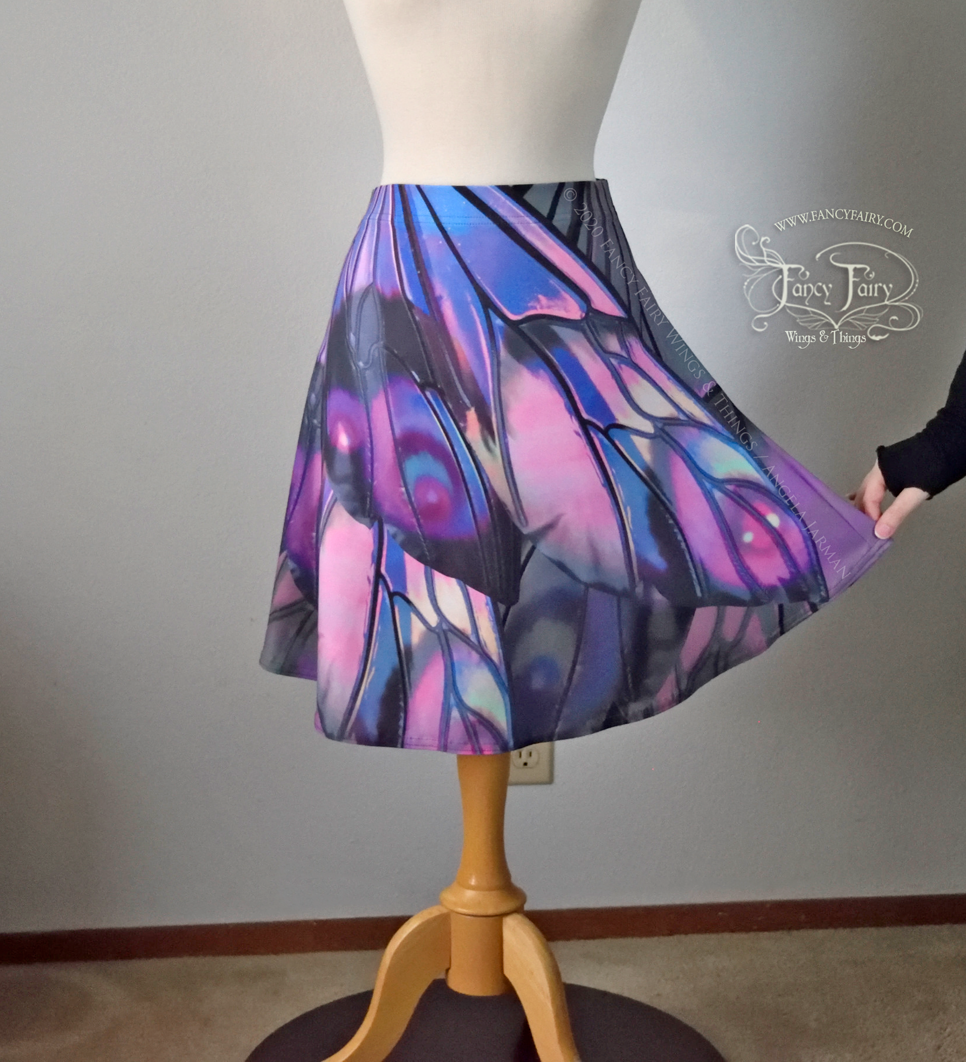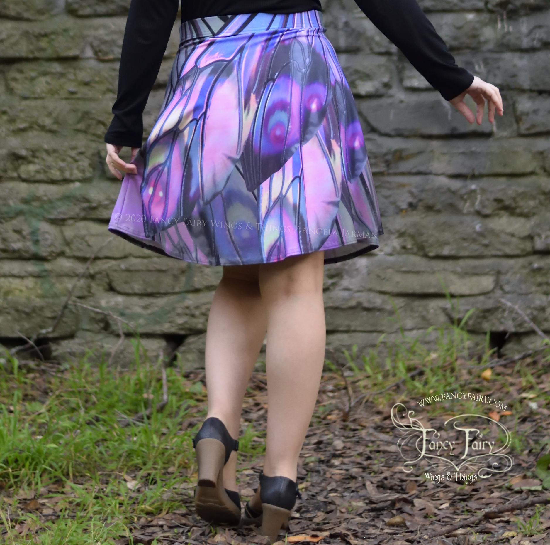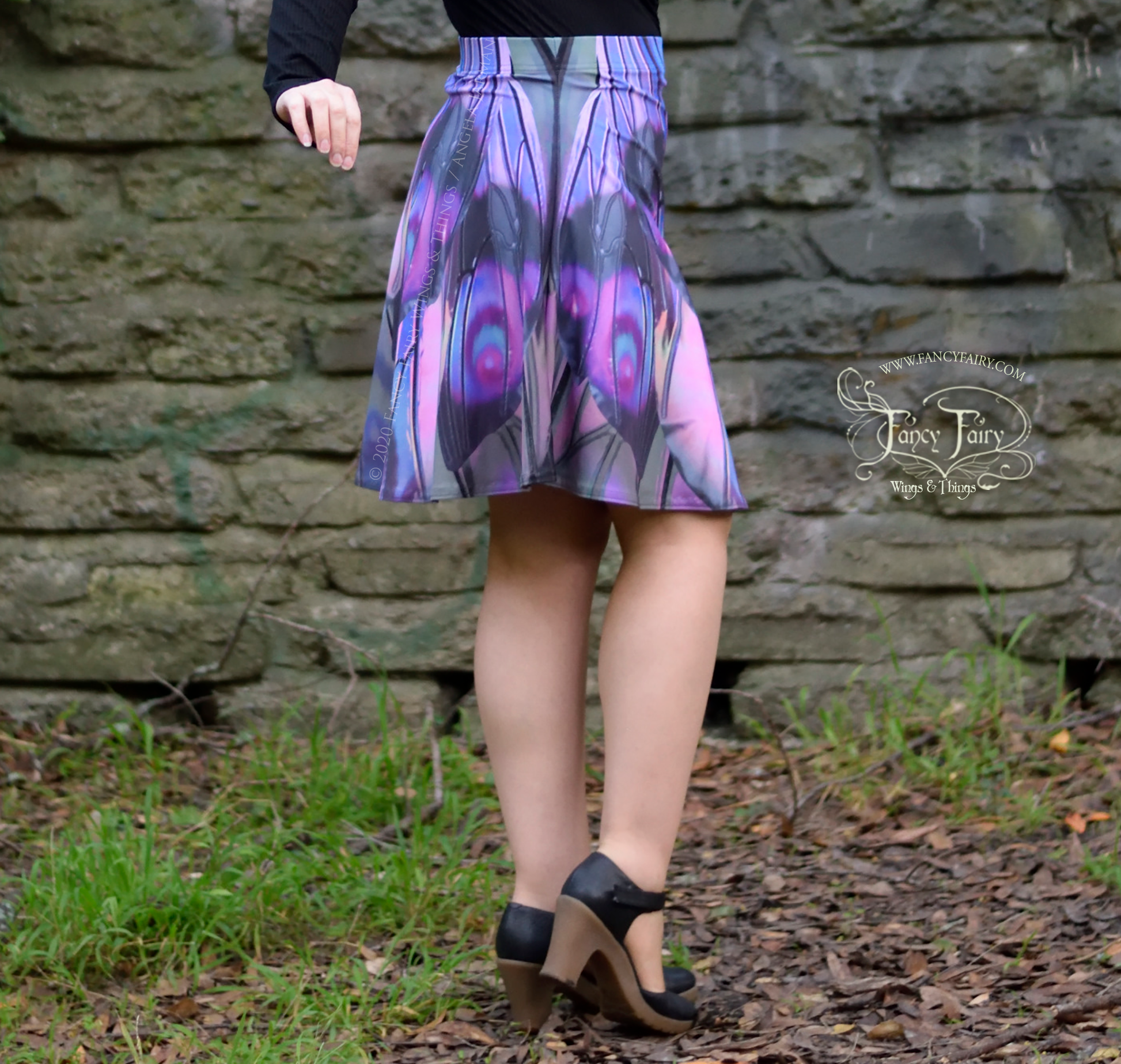 A-line flare skirts printed with my Unseelie Ellette fairy wings design for a faerie aesthetic in a casual skater skirt!