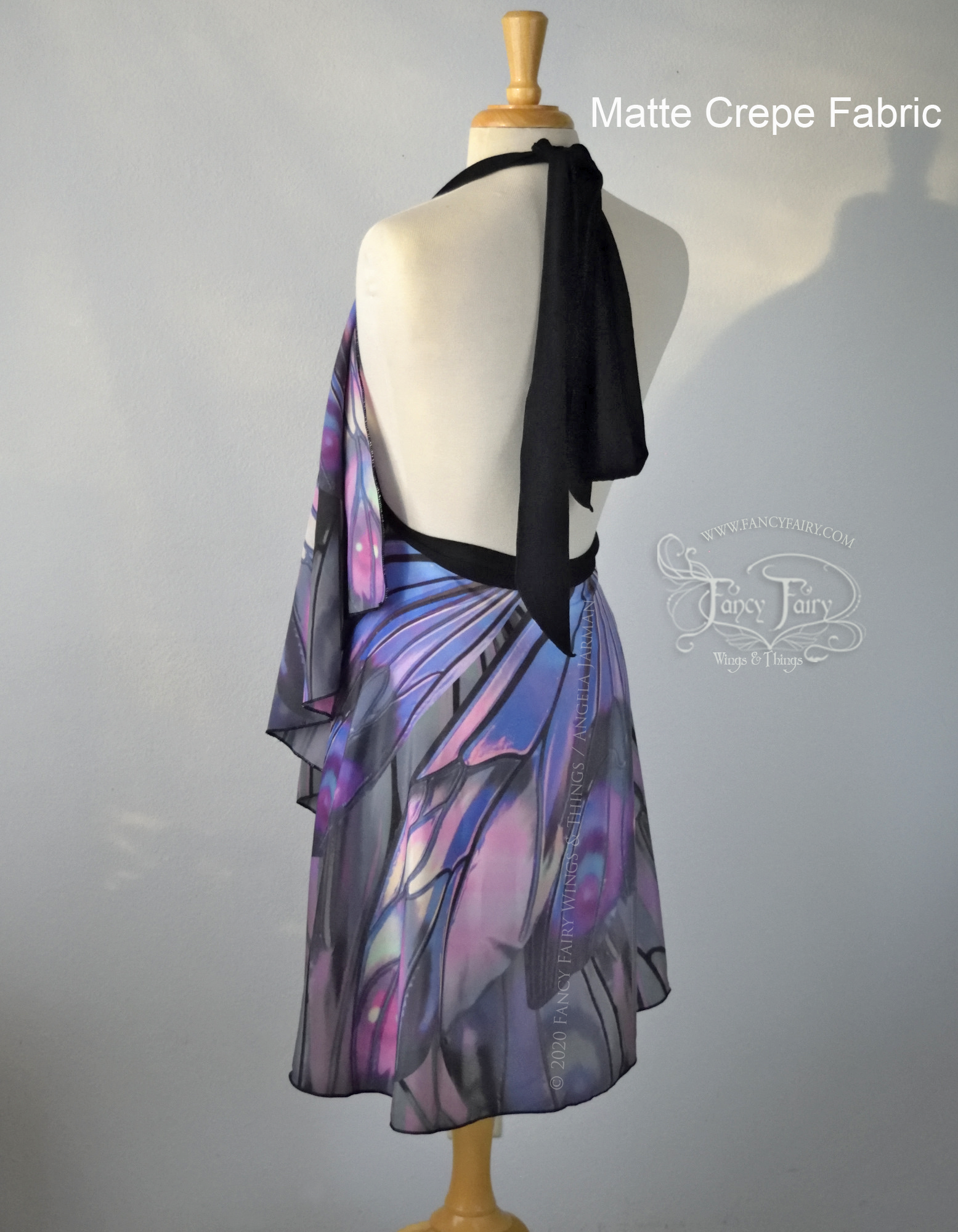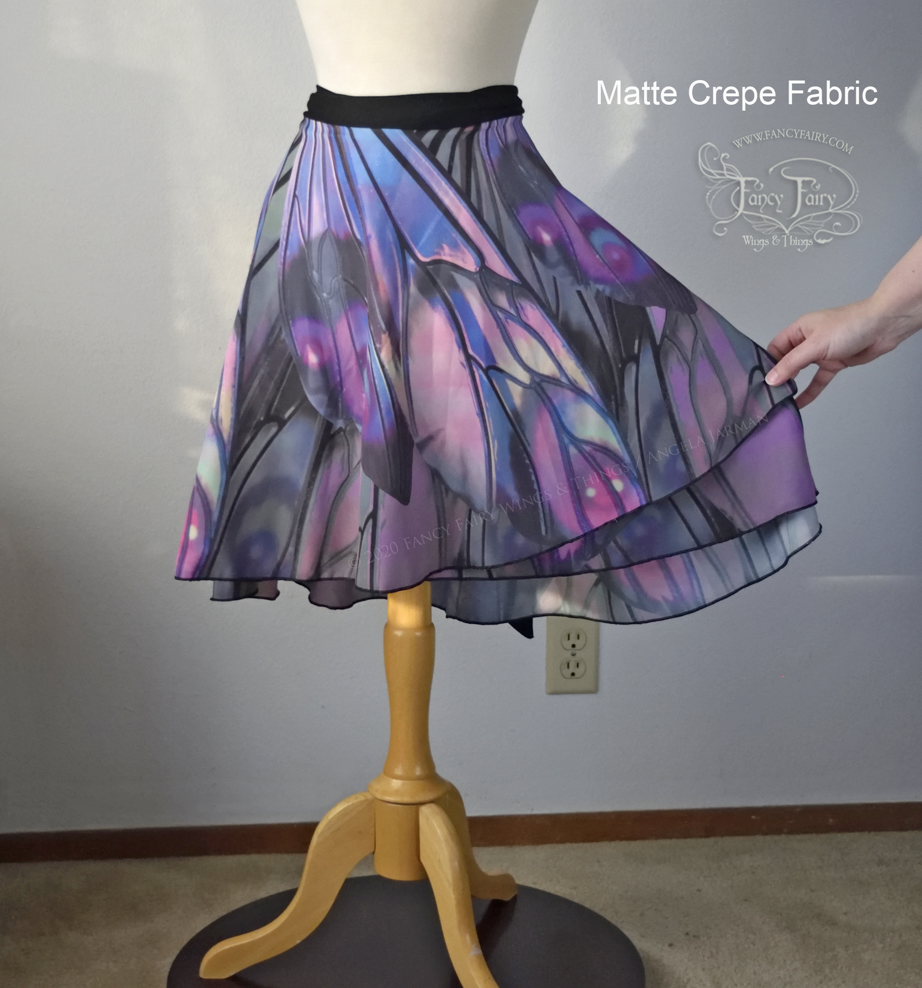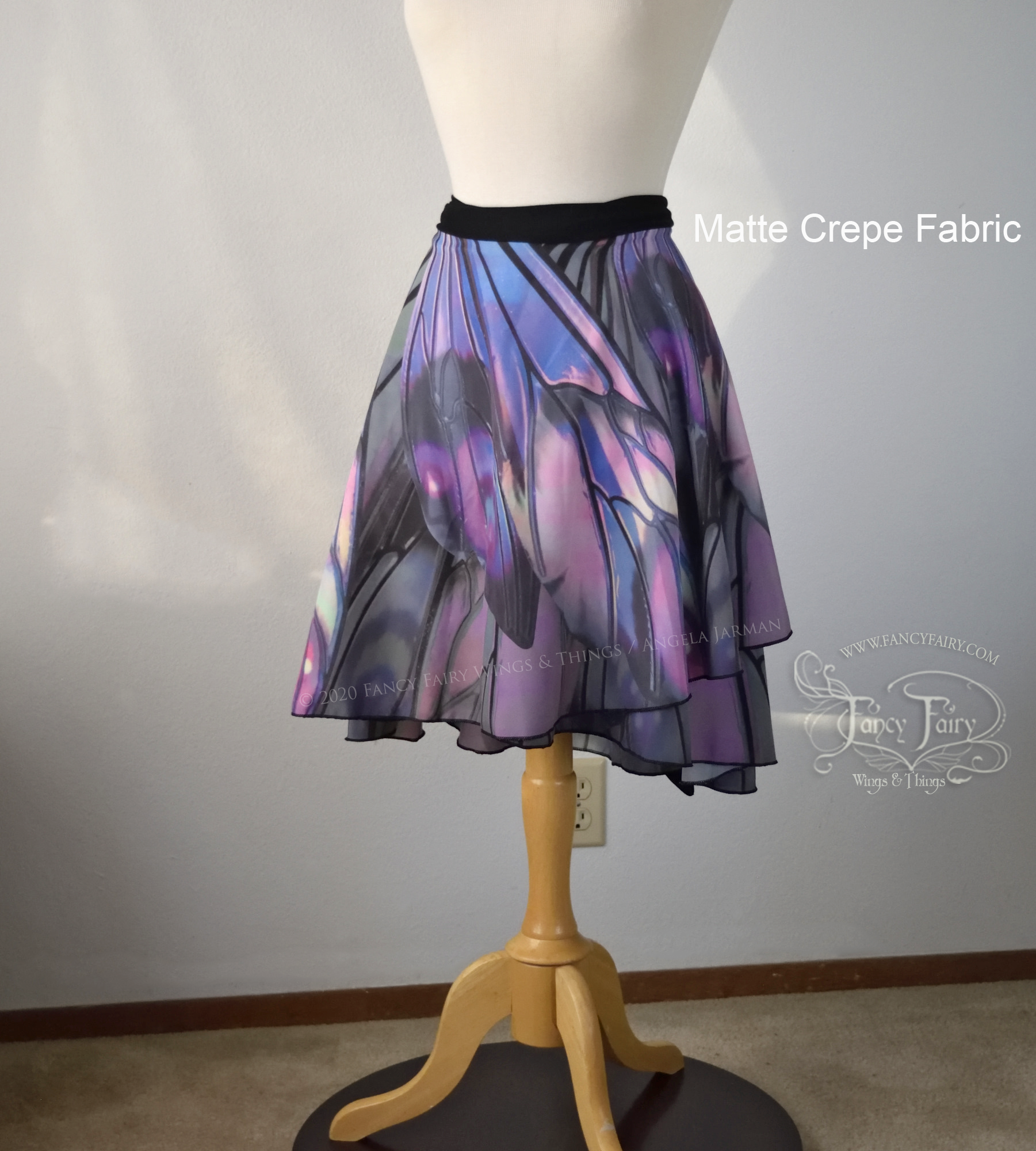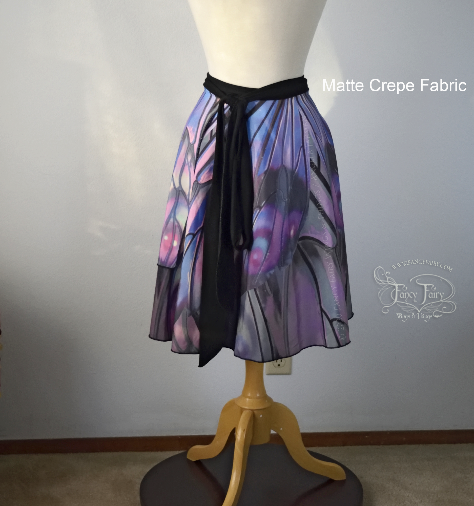 My 'Unseelie Ellette' iridescent fairy wings art, printed on full circle one-size wrap skirts to fit a wider variety of sizes. Beautiful enough to be incorporated into a fairy costume, casual enough for any day! Waist size up to 41 inches.