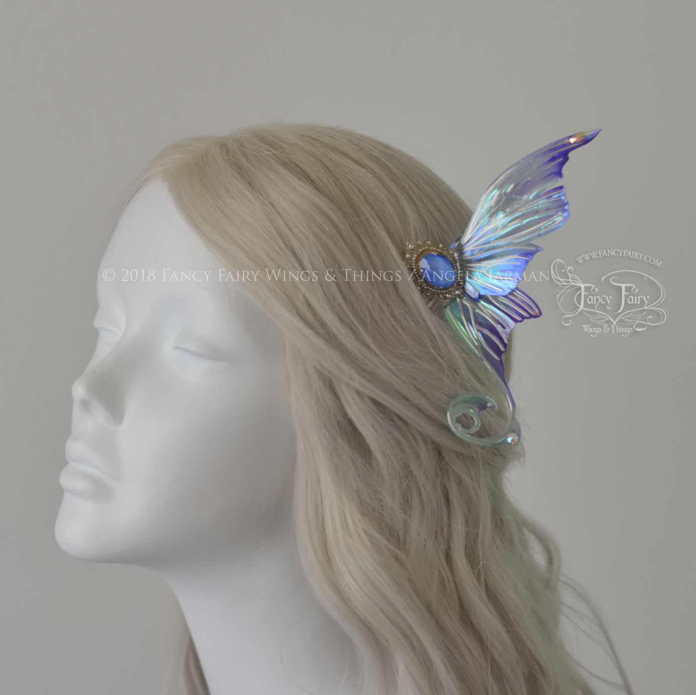 Aphrodite 3 and 1/2 inch Oceanic Fairy Wing Hair Combs with Silver Veins