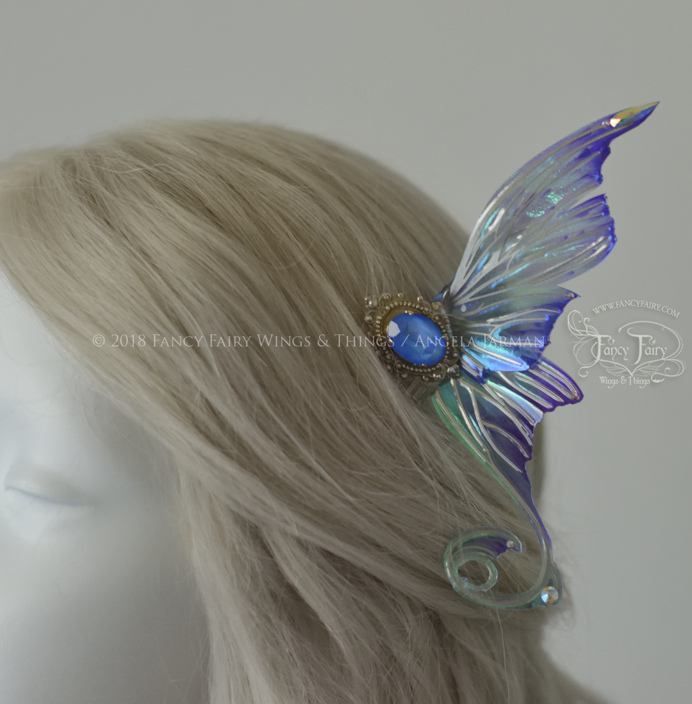 This set of 2 mini painted Aphrodite fairy wings have been crafted into a set of two silver combs to wear in your hair, a left and a right comb.