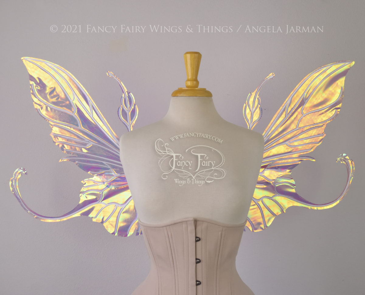 The Elvina design is from the 2018 Ethereal Collection of convertible fairy wings, that can be positioned in either an 'up' or a resting 'down' position without compromising the metal with harsh bending.