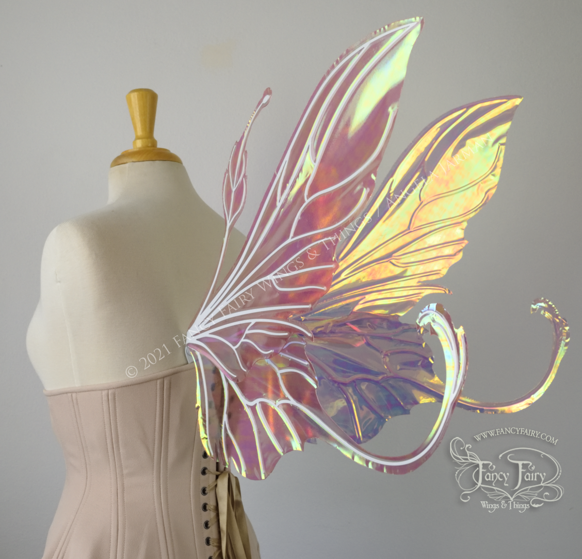 Elvina Iridescent Convertible Fairy Wings in Bloom with White veins