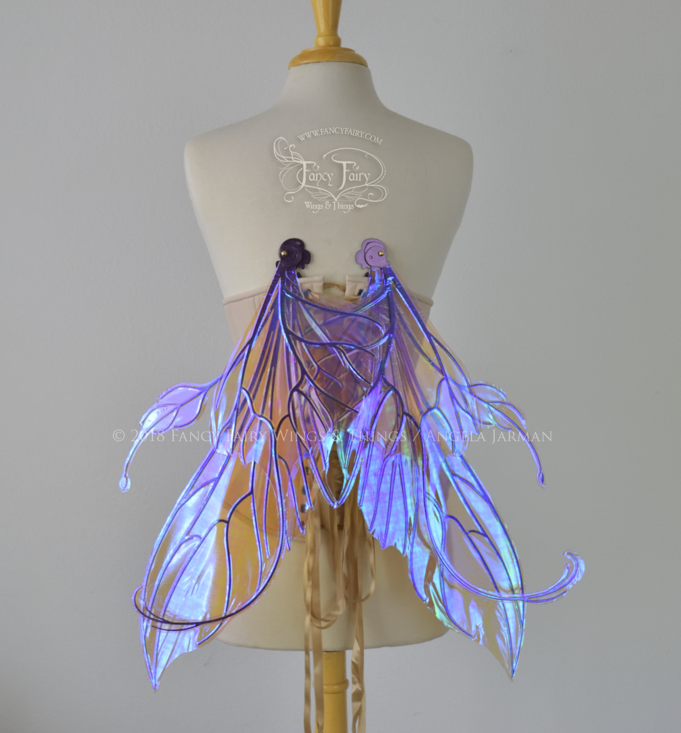 Elvina Iridescent Convertible Fairy Wings in Lilac with Chameleon Cherry Violet Glitter veins