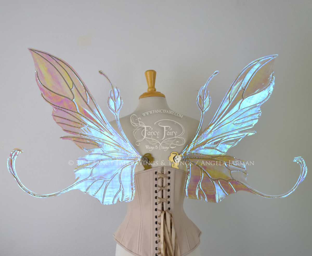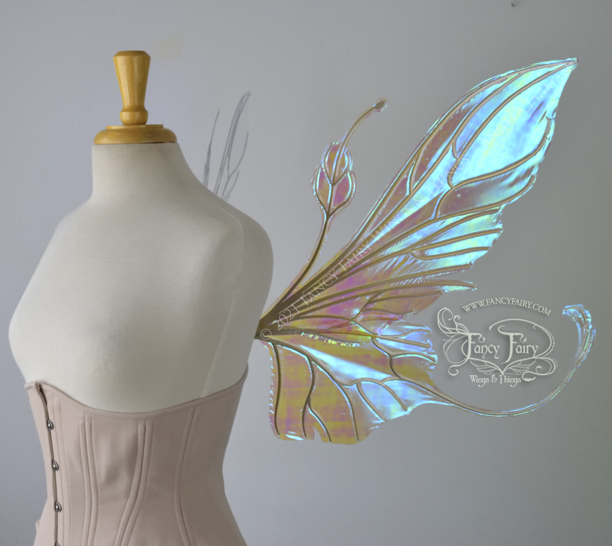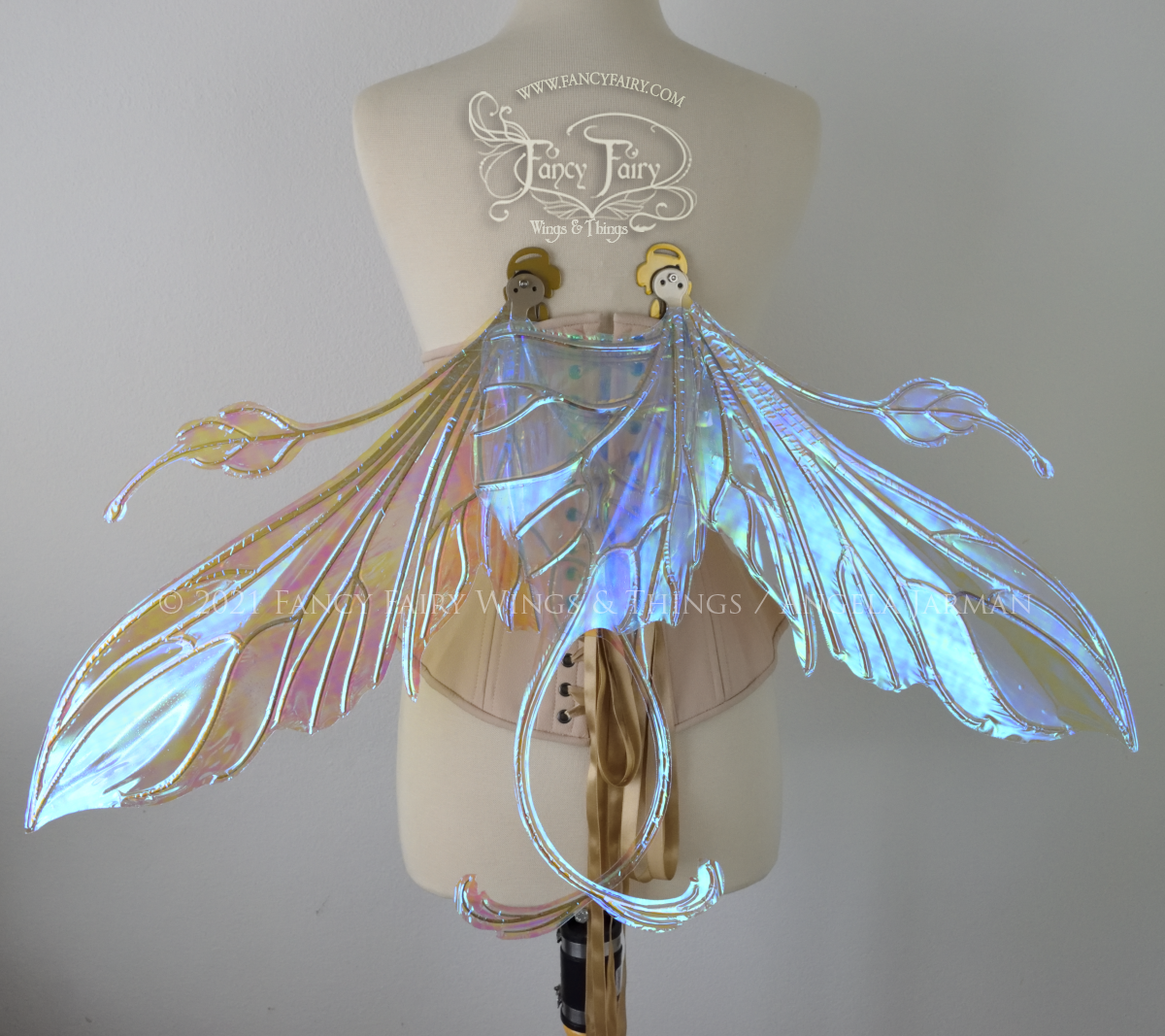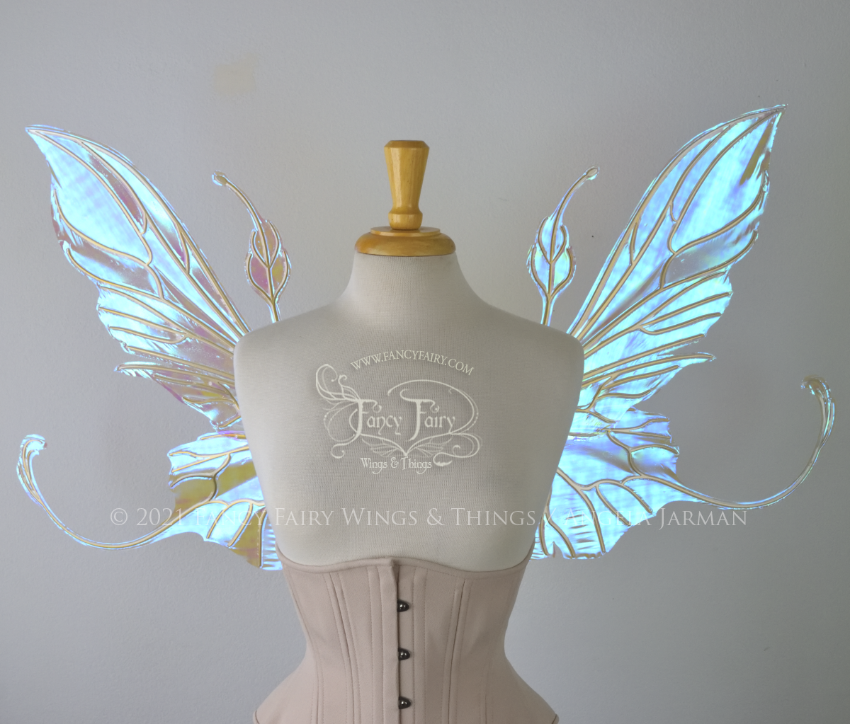 Elvina Iridescent Convertible Fairy Wings in Opal with Candy Coat Gold veins