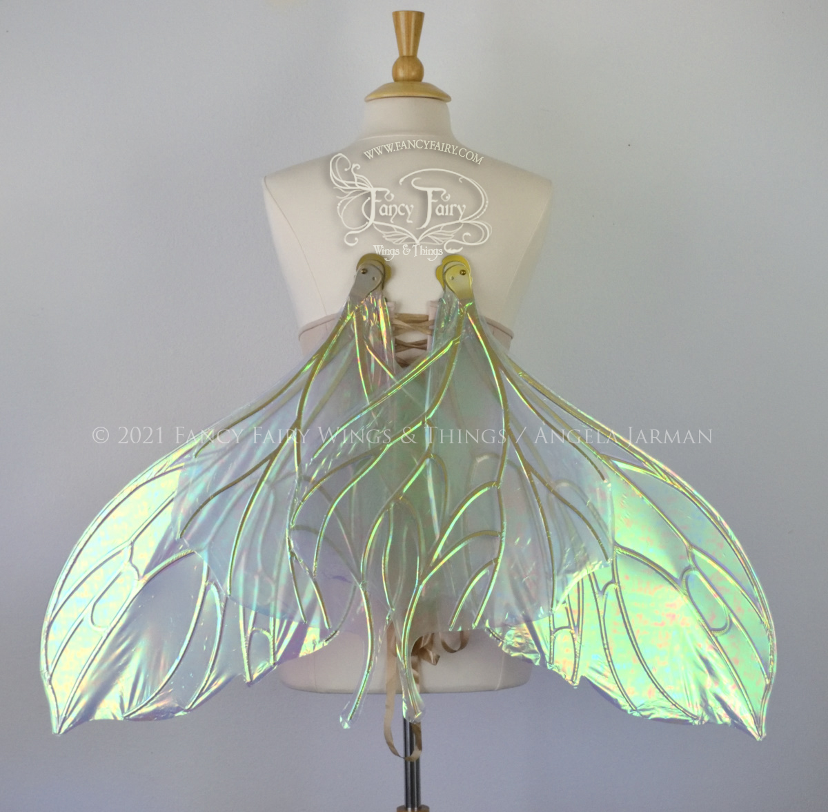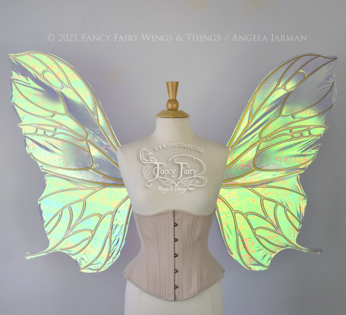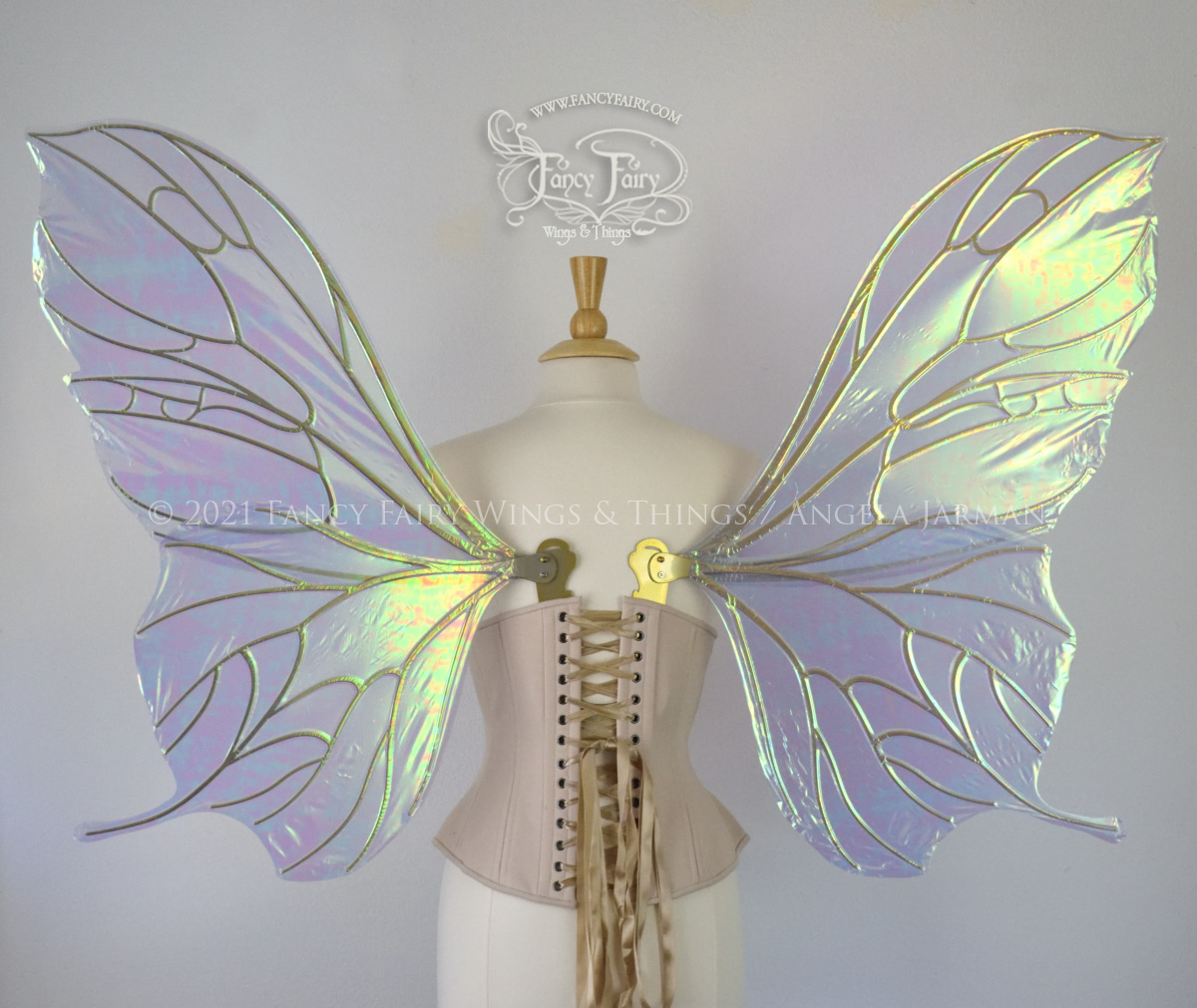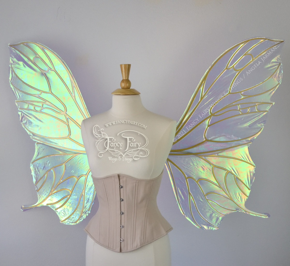 Extra Large Pansy Iridescent Convertible Fairy Wings in Baby Blue with Gold veins