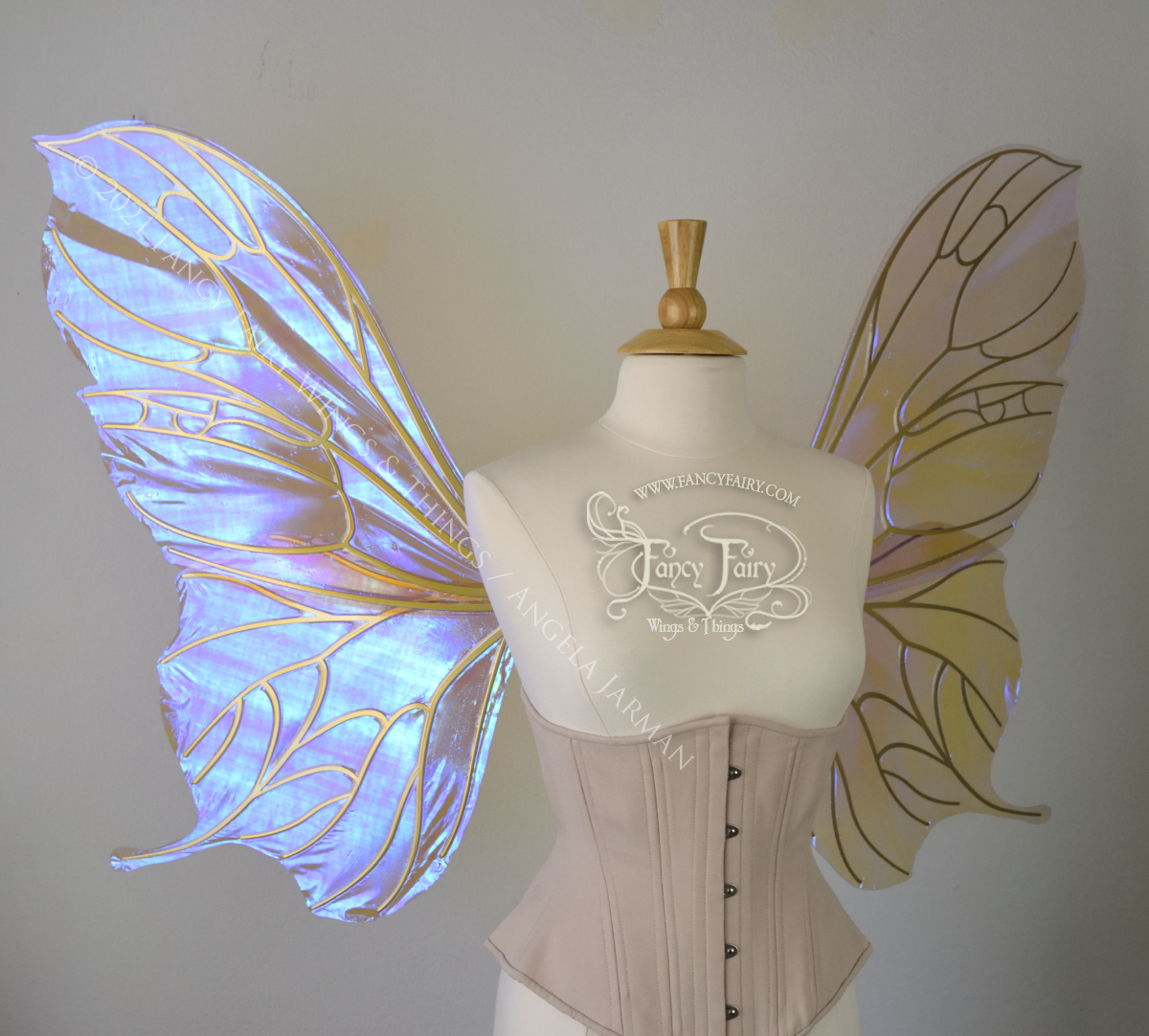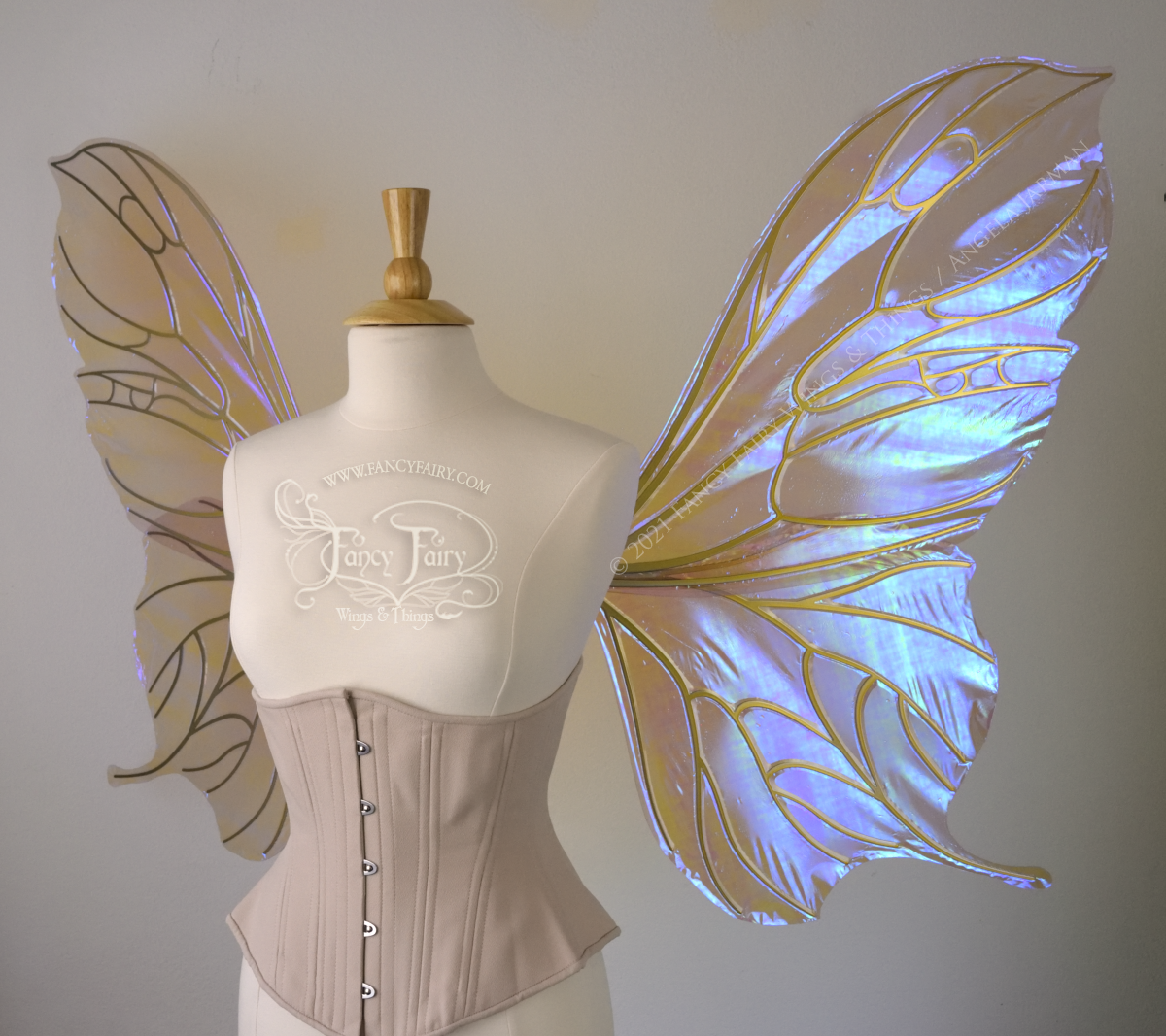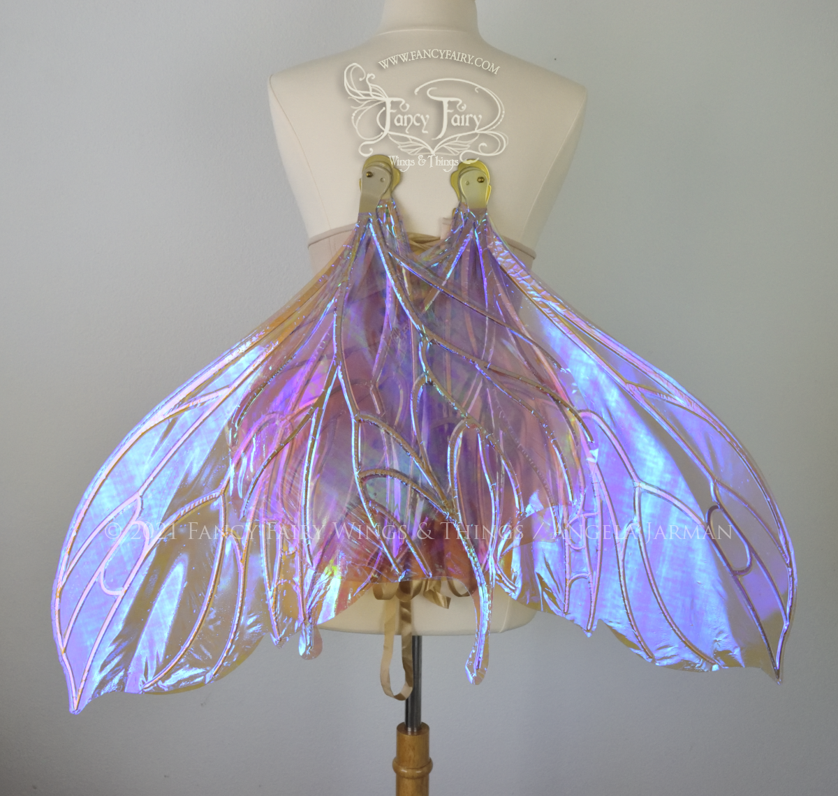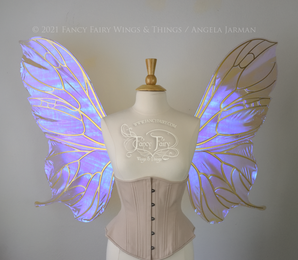Extra Large Pansy Iridescent Convertible Fairy Wings in Lilac with Gold veins