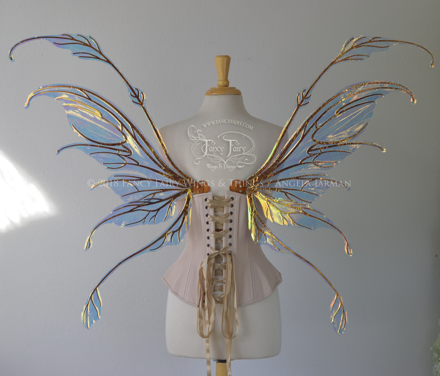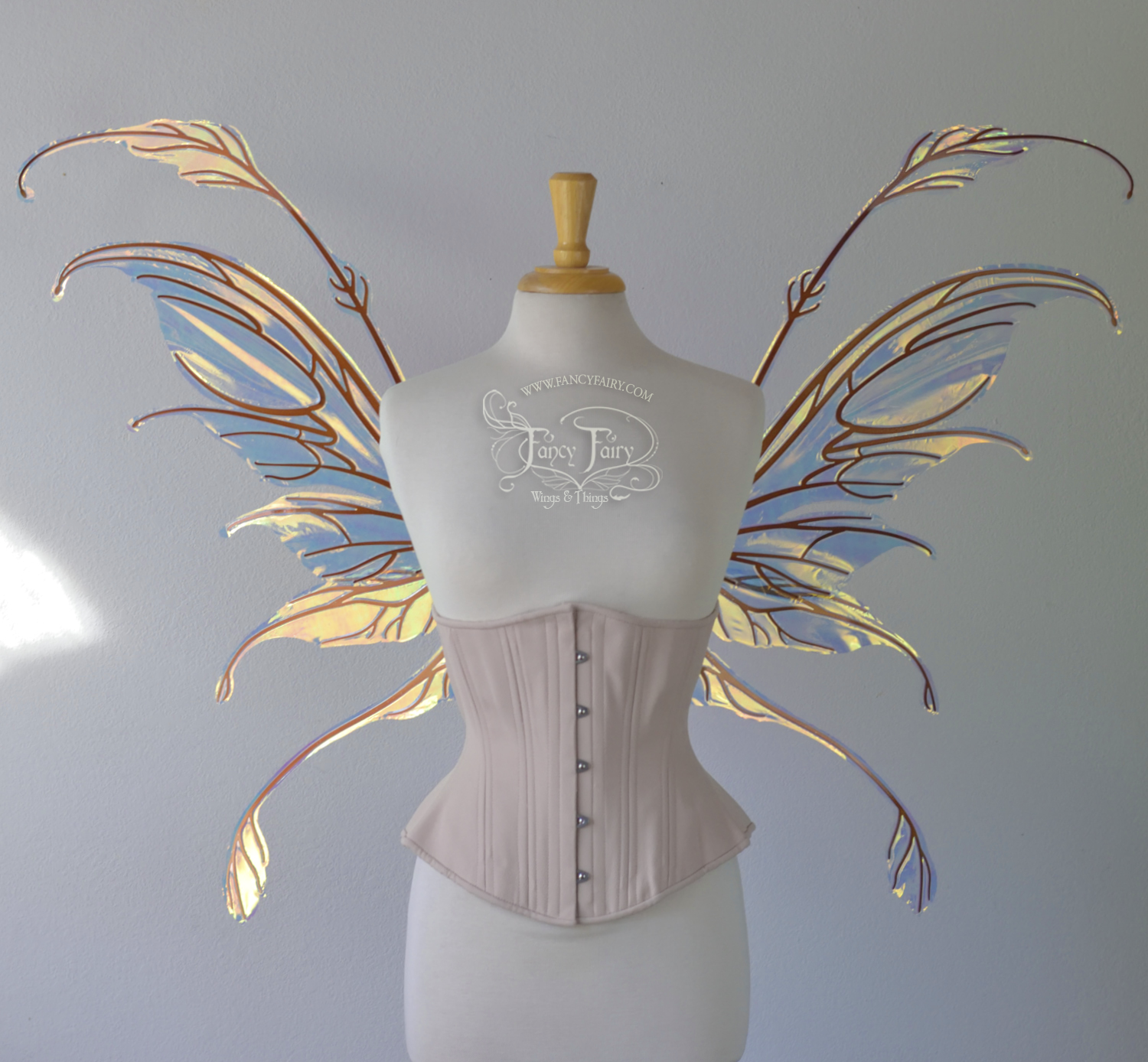 Fauna Iridescent Convertible Fairy Wings in Clear Diamond Fire with Copper veins