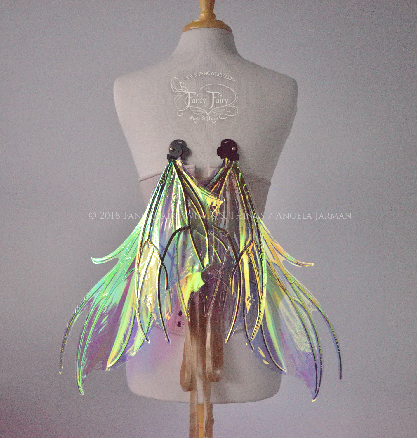 The Nightshade fairy wings are from the 2018 Ethereal Collection of convertible fairy wings that can be positioned in either an 'up' or a resting 'down' position without compromising the metal with harsh bending.