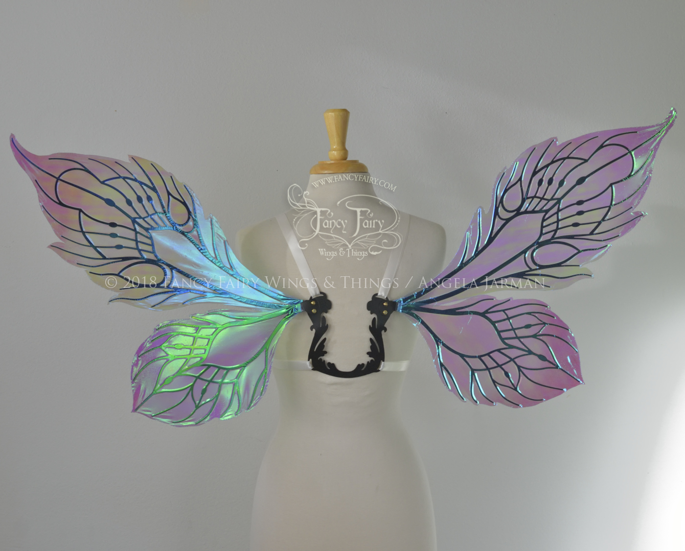Sintra Iridescent Convertible Fairy Wings Painted Aquamarine and Plum with Black veins